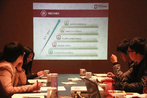 材料学院党委副书记黄彬、设传学院党委副书记兼副院长赵茜首先分别介绍了两学院的成人视频概况 、学生工作理念和学工团队梯级建设,分析了学生工作目前面临的主要问题和挑战,探讨了新形势下人才培养的目标和育人模式。