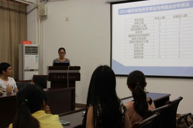 交流开始前,学院研究生辅导员李科艳就2014届材料学院研究生就业情况做了客观分析。严峻的就业形势和不明朗的就业前景,充分唤起了在座学生骨干的危机感。辅导员鼓励学生骨干在就业中努力冲击国防单位和五百强企业,在就业过程中发挥模范带头作用。同时,希望学生骨干在未来的工作中能够发挥高事业发展能力,为母校争光。