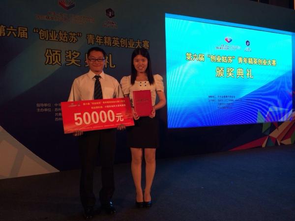7月11日,第六届“创业姑苏”青年精英创业大赛颁奖典礼在苏州独墅湖世尊酒店隆重举行。我校成人视频 学生创业团队“宁航风电创业科技有限公司”(指导教师杨颖,学生沈钦龙、胡悫睿、蒋维娜和经管学院宋辞)荣获大赛三等奖。