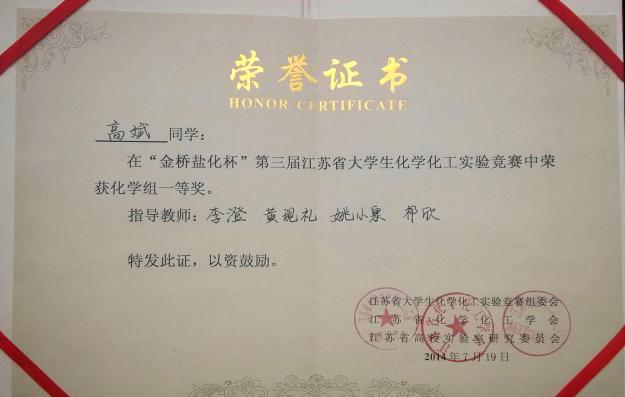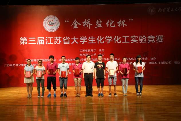 江苏省大学生化学化工实验竞赛以“促进江苏高校化学化工实验教学改革,提高本科化学化工教育水平与人才培养质量”为宗旨,每两年举办一届,旨在加强学生的化学、化工实验的基础理论、基础知识、基础技能,培养学生的创新意识、创新能力和创新精神。第三届大赛于2014年7月在南京开赛。江苏省普通高等学校共计有44个化学组和36个化工组共计240名选手实际参赛。在包括南大、东南大学、南师大、南工大、苏大等学校的44个化学组竞赛中,成人视频 应用化学专业参赛的三名学子全部获奖。
