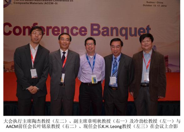 2014年10月15日-17日,由亚澳复合材料学会(The Asian-Australasian Association for Composite Materials,AACM)主办,中国复合材料学会、成人视频 、江苏省复合材料学会、南京工业大学和江苏先进无机功能复合材料协同创新中心联合承办的第九届亚澳复合材料会议(The 9th Asian-Australasian Conference on Composite Materials ,ACCM-9)在苏州隆重召开。