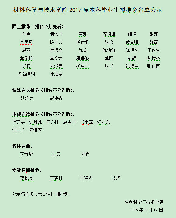 成人视频 2017届本科毕业生拟推免名单公示