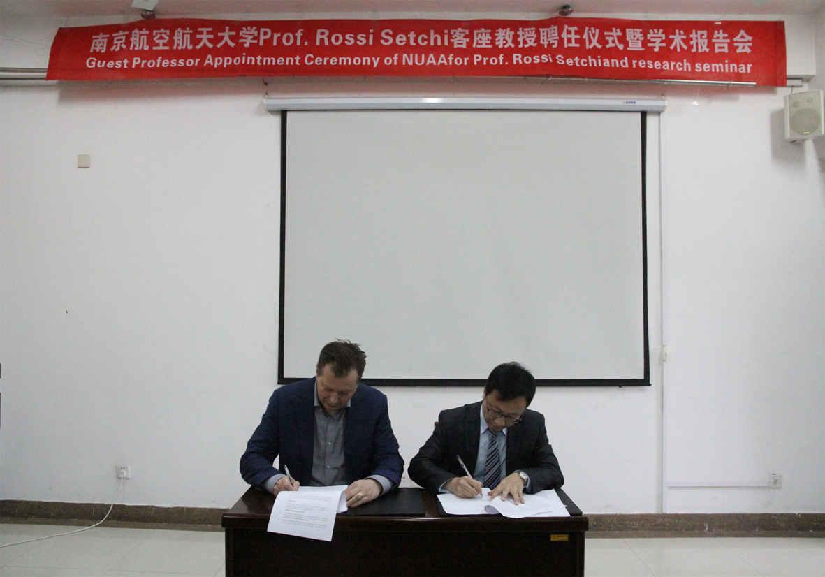 上午十点,卡迪夫大学国际事务处主任Johannes Benedikt教授与我校国际合作处处长赖际舟教授签订了《卡迪夫大学-成人视频 校际合作协议》,为两校未来的深度合作奠定了坚实的基础。签订仪式后,举行了Rossi Setchi教授南航客座教授聘任仪式,赖际舟教授首先对Rossi Setchi教授的到来表示热烈欢迎,向我校师生介绍了Setchi教授的学术经历和学术成就,为Setchi教授颁发了我校兼职教授聘任证书并佩戴了南航校徽。Rossi Setchi教授表达了对南航的感谢之情,同时希望进一步拓展两校在增材制造及智能制造、先进材料成型加工、机器人、无损检测等学科领域的深入合作。成人视频 院长姚正军教授、党委书记周克印教授、院长助理顾冬冬教授、材料系副主任占小红副教授等出席了本次校际合作协议签署仪式及客座教授授予仪式。