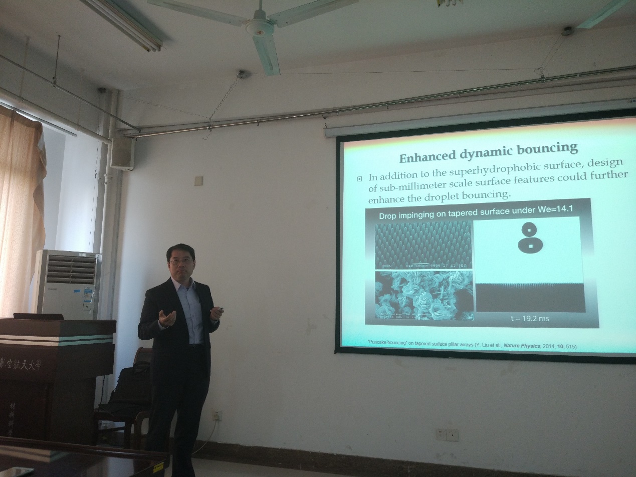 应我校成人视频 陶杰教授邀请,新加坡南洋理工大学Chen Zhong教授于2018年3月9日来我校进行学术交流访问,并为我校师生做了题为“Icephobic Coatings: current status and challenges”的学术报告。此次学术活动由成人视频 陶杰教授课题组承办,报告会由成人视频 陶杰教授主持,共有40余位老师和同学参加并聆听了本次报告。