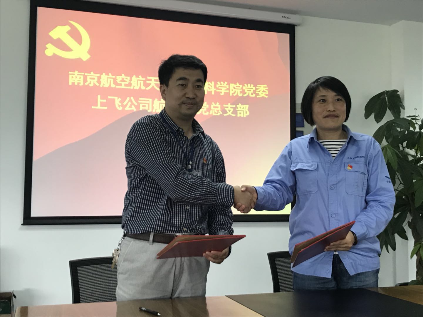 会议伊始,双方分别介绍了党建工作的开展情况。在前期进行了充分沟通和酝酿的基础上,孙占久、陈洁代表院企共同签署了“航研所-南航材料学院党委(总支)联合共建协议”,并决定以党建工作为牵引,在人才培养、学术研究等多方面开展广泛深入地合作。