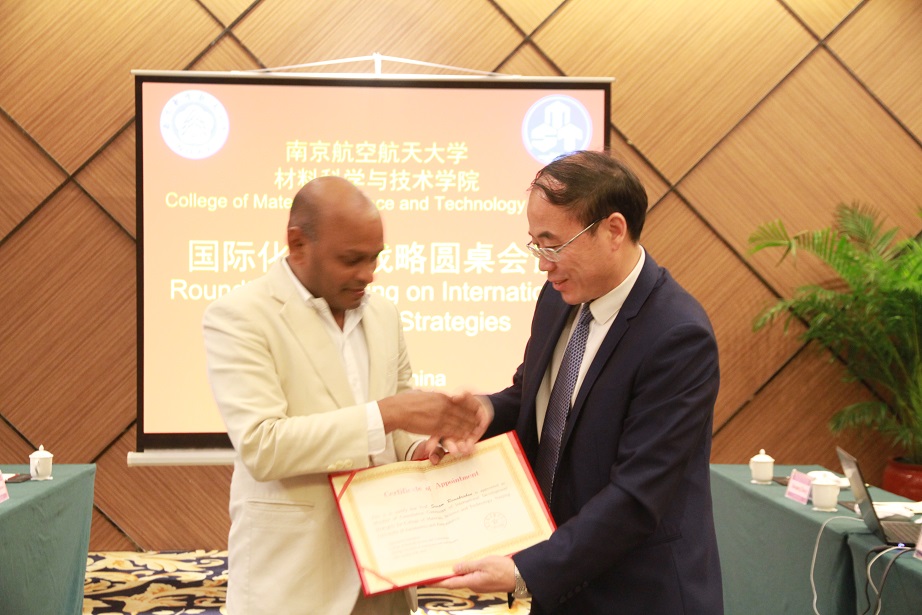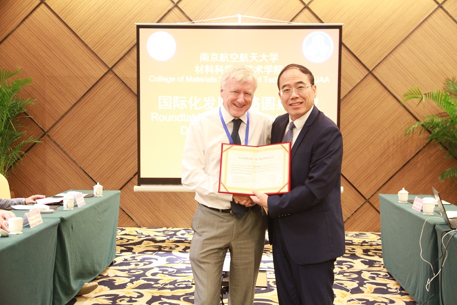 随后,外方与会专家围绕南航材料学科发展、人才培养、师资队伍建设、国际化合作等方面分别发表了各自的真知灼见,明确了中外双方的合作领域及途径,包括学生互换开展短期/长期学习交流、国际学生奖学金申请、国际优秀人才引进、国际合作项目申请、联合发表高水平论文、共同举办国际研讨会、筹建国际合作实验室等,为学院的国际化发展提出了建设性意见和指导性规划。会上举行了材料学院“高端人才发展指导委员会”的受聘仪式,学院院长姚正军为海外专家颁发了聘书。