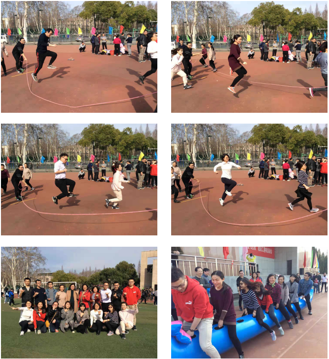 跳长绳比参赛是三项比赛中最惊心动魄的项目,10名教职工需在2分钟内,依次按“8”字形跑跳完成跳绳,按照累计跳绳次数进行最终排名。为了赛出学院教职工的风采,在比赛的前一周,队员们每天中午牺牲宝贵的休息时间,备战练习,商讨战术。在赛场上,女教工们身轻如燕,动作灵活敏捷;男队员们完美配合,动作协调,最终以143次计数获得第六名的好成绩。