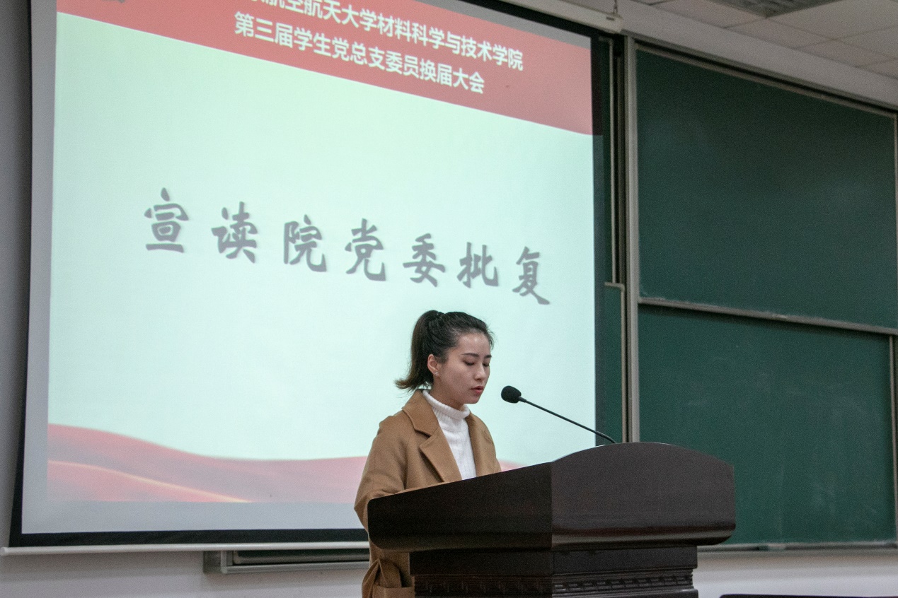 彭恬代表学院党委宣读《关于同意成人视频 研究生纵向党支部的批复》、《关于同意研究生党支部委员会选举结果的批复》,根据选举结果,同意罗鸿芸等9名同志担任党支部书记,李志伟等34名同志担任党支部委员。