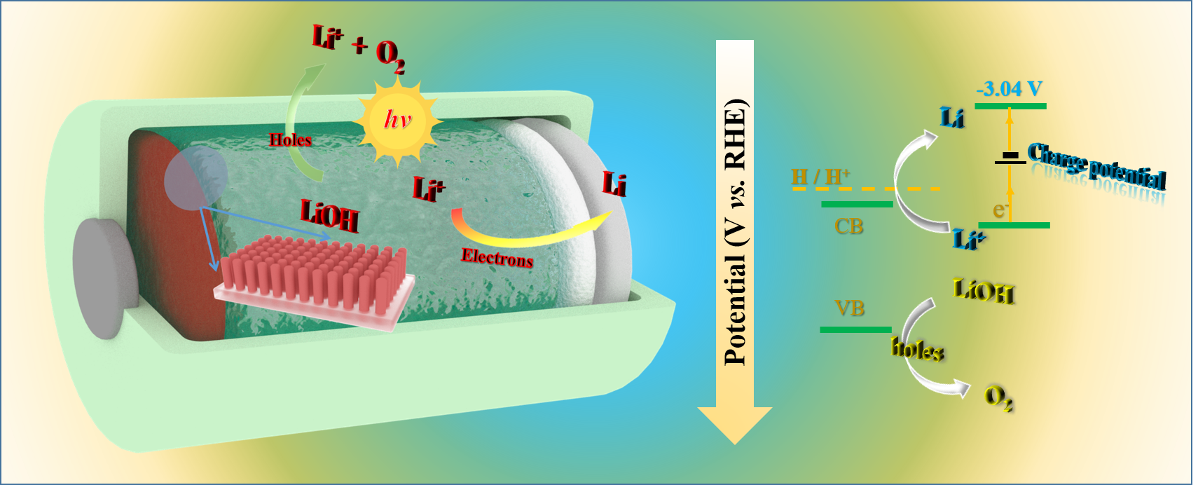 1 首次将传统的光电化学水氧化研究引入到水系锂-氧电池中,两者的工作环境均为水溶液,在机理上完全一致。在这种情况下,研究表明在PEC使用的n型半导体大多可以直接应用光辅助电池体系。