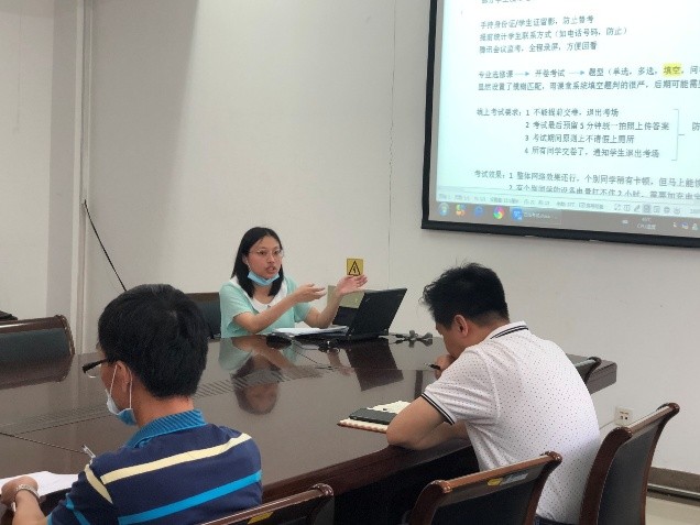 6月8日上午10点,成人视频 召开关于线上考试及虚拟仿真实验教学研讨会,特邀“已完成线上考试”的刘初阳老师及“已试用虚拟仿真实验教学软件”的周莉老师分享经验及想法。教学院长陶海军,各系教学主任、实验室主任,以及即将开展线上考试、线上实验教学的老师参加了此次会议,会议由陶海军主持。