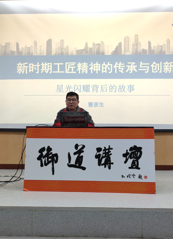本次讲座以一段新闻联播《大国工匠,匠心报国》的报道视频开始,视频向我们展示了曹彦生匠心报国的真实例子。曹彦生对“工匠精神”的执着追求,对超凡品质的主动探寻让现场的每一位师生倍感鼓舞。