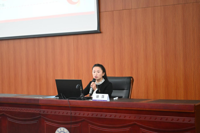 徐萍为党员同志们深刻解读了《成人视频 “百年信仰·青年传承”党史学习教育方案》。在解读学习计划时,她重点指出五个点:主动深入做好自主学习、形式多样开展集体学习、生动活泼上好专题党(团)课、举旗定向汇聚榜样领航以及知行合一开展实践教育,为党员学生们切实奠定了学习的方向。