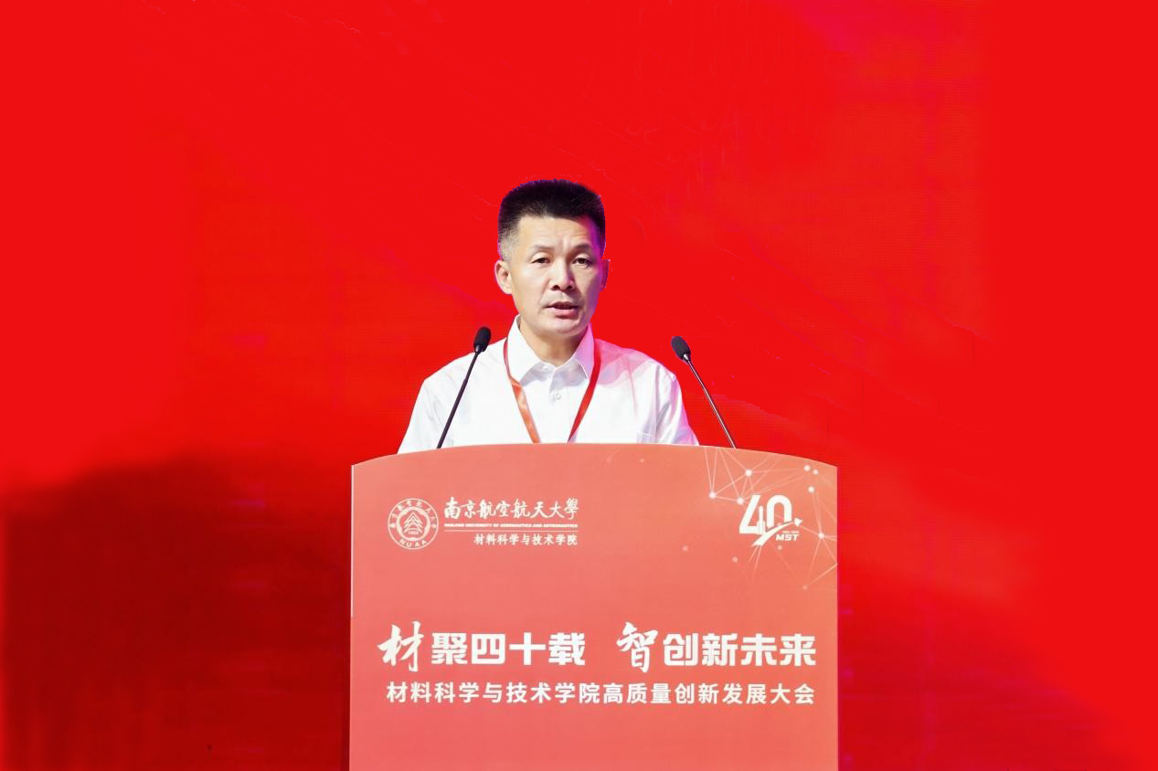廉玉波作为院友代表发言。他深情回顾了在南航的求学岁月,不仅为他筑牢了材料专业的扎实根基,更塑造了“坚韧不拔、求真务实”的做事品格,从“飞机梦”跨界“汽车梦”的攻坚与突破,都离不开母校赋予的专业素养和创新精神。他深切表达了对母校母院的感恩之情,为学院建院40周年送上了诚挚祝福。他表示,作为院友,将持续关心关注并全力支持母校和母院的发展,锚定国家战略核心领域深耕不辍,为高端制造业产业升级、为科技事业续写辉煌作出更多贡献。