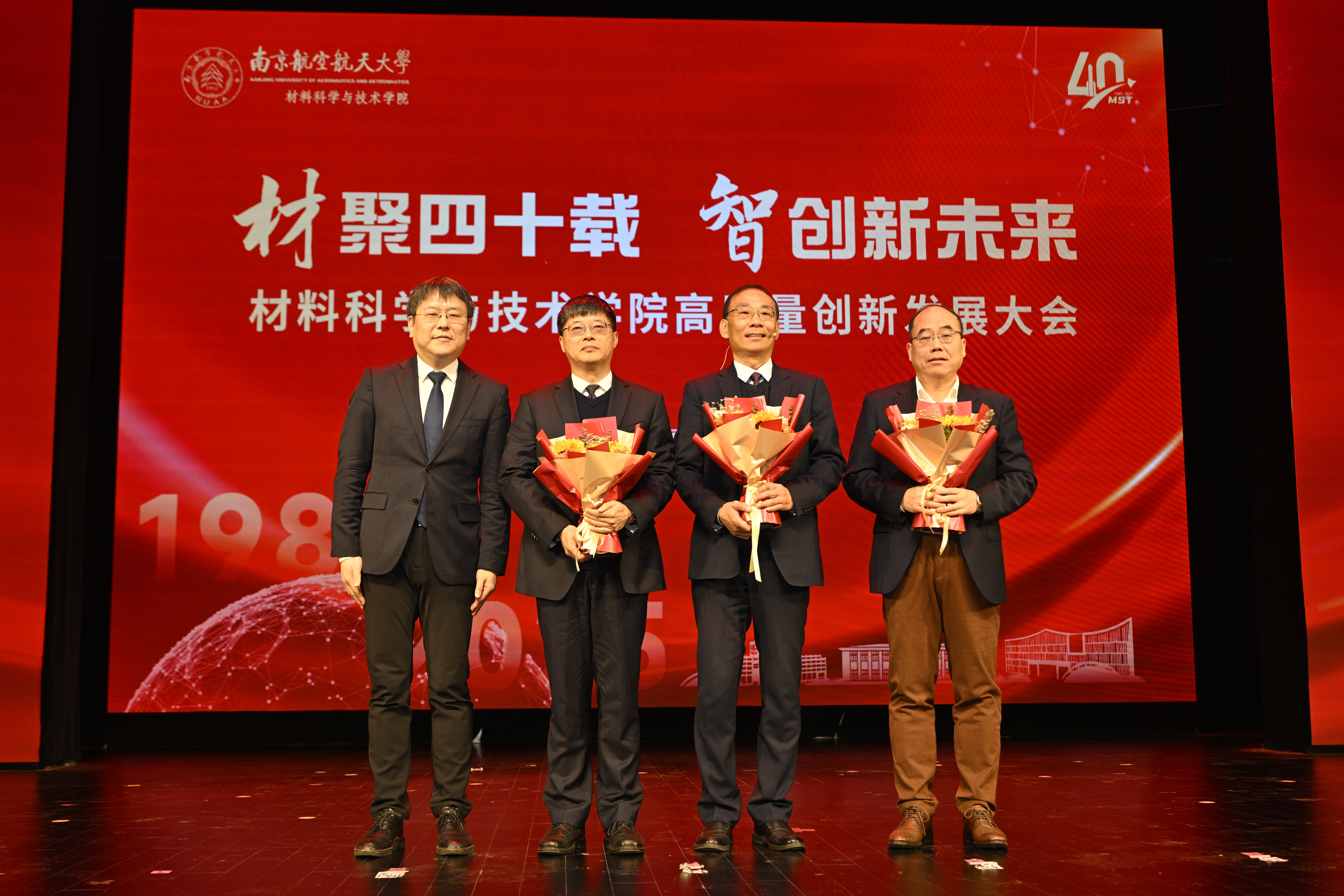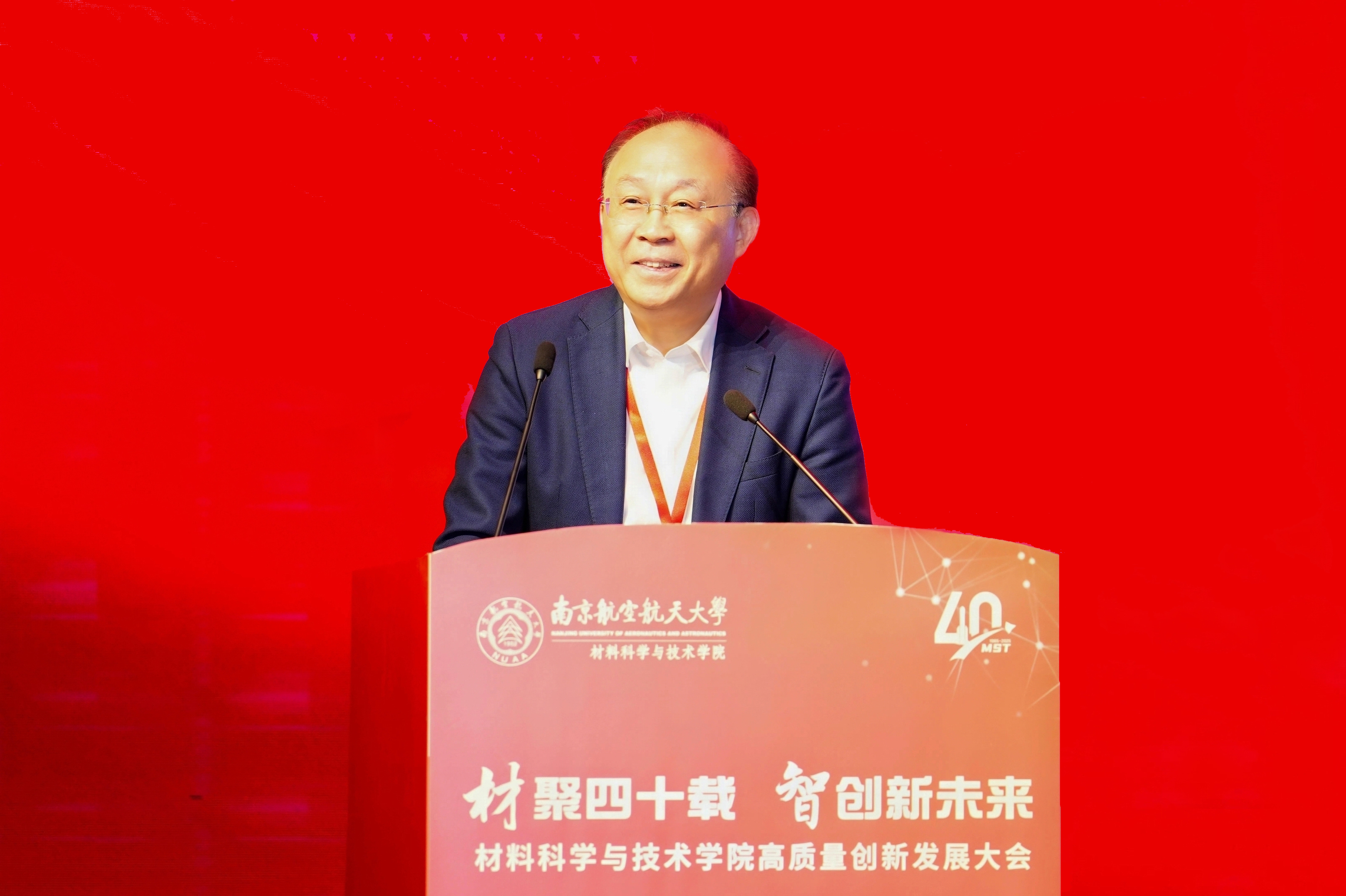 姜斌代表学校向为材料学院发展倾注心血的老领导、老教师、老同志们致以最崇高敬意,向长期以来关心支持学院发展的社会各界朋友表示衷心感谢。他指出,学院自1985年创立以来,始终秉承“航空报国、贡献国防”的传统,涵养“材料强国、材料报国”的使命担当,深耕于航空航天与国防现代化的沃土,走出了一条特色鲜明、成果丰硕的创新发展之路。面向未来,期待学院坚持党建领航,筑牢高质量发展的政治根基和组织保障,聚焦国家重大需求,持续优化学科布局、提升贡献能级,不断产出标志性成果,彰显南航材料担当;抢抓发展机遇,持续搭建高层次人才干事创业平台,厚植拔尖创新人才培养沃土,奋力建设航空、航天、民航特色鲜明的世界一流材料学院。