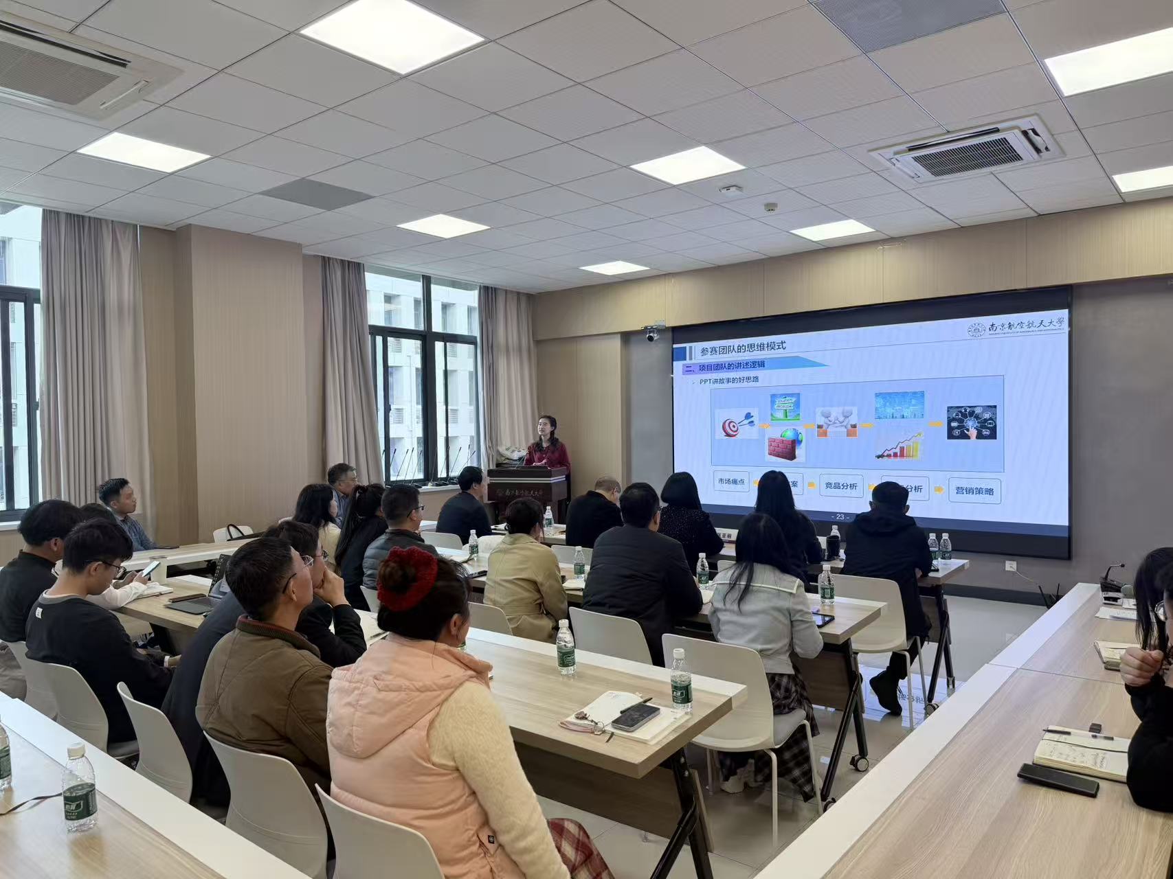 谢雨菲围绕学校创新创业教育体系与赛事支持政策进行了全面介绍。她从赛事组织机制、校内选拔流程、重点项目培育路径等方面进行了系统讲解,重点解读了学校在项目孵化、导师配备、经费支持及资源对接等方面的保障举措。她指出,学校将持续完善“课程—竞赛—实践”一体化培养体系,通过制度化、体系化支持,为学生创新创业项目提供全周期服务,助力优秀项目脱颖而出。